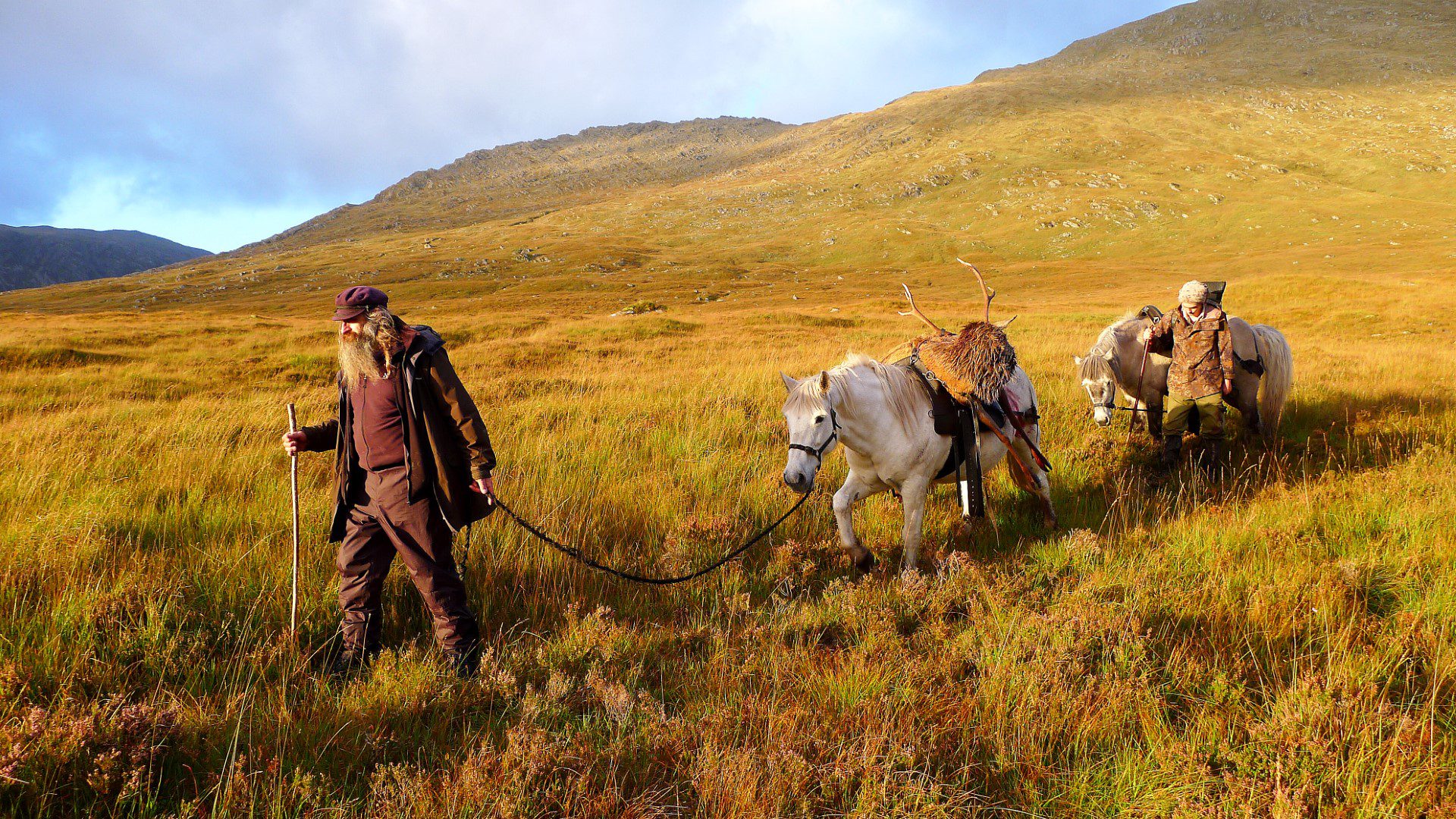 Figur 7 – Mange forbinder Skottland med «the highlands» som består av store åpne lyng- eller gressheier. Her er det utviklet en unik guidet jakt etter hjort og der noen fortsatt bruker skotske ponnier for å transportere dyr ut av terrenget. Her fra en jakt på Knoydart Foundation sitt område – foto © Johan Trygve Solheim