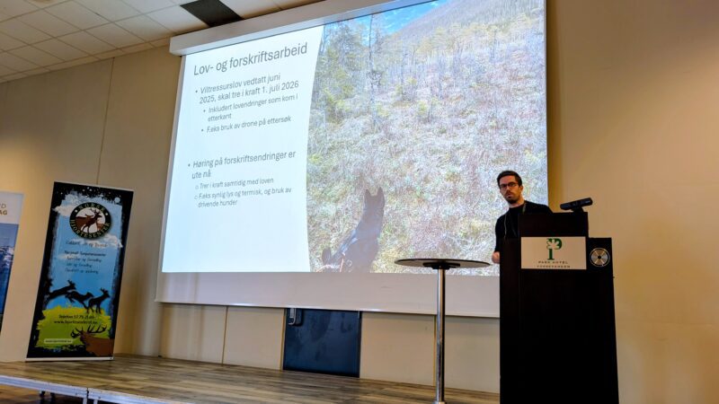 Ingmar Slettemark, kommunal viltforvaltar og ettersøksjeger, heldt foredrag om fordelar og ulemper ved bruk av drone i ettersøkssamanheng. Dette kan verte eit nyttig hjelpemiddel, men i ukyndige hender kan det øydelegge meir enn det er til hjelp.