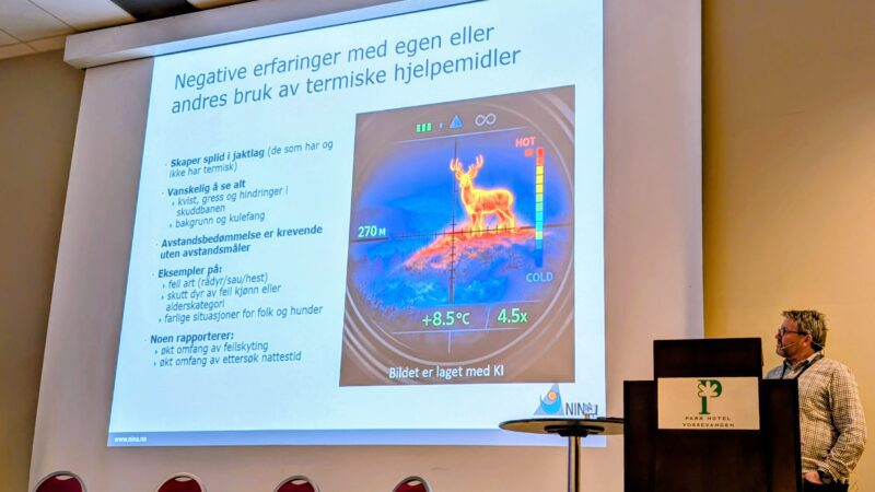 Oddgeir Andersen frå NINA informerte om resultata frå ei spørjeundersøking om bruk av termisk utstyr i jaktsamanheng.